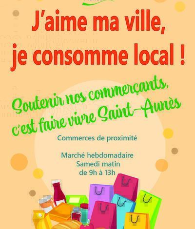 Consommons local : soutenons nos commerces de proximité et notre marché du samedi matin de 9h à 13h au centre ville de Saint-Aunès.