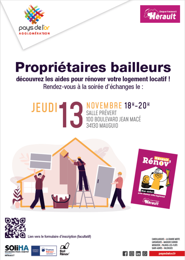 Une réunion d'information est organisée le jeudi 13 novembre pour les propriétaires bailleurs, afin de vous faire découvrir les aides à votre disposition pour rénover votre logement locatif.