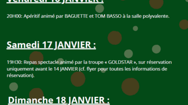 Le comité des fêtes organise un repas spectacle samedi 17 janvier et un grand loto dimanche 18 janvier