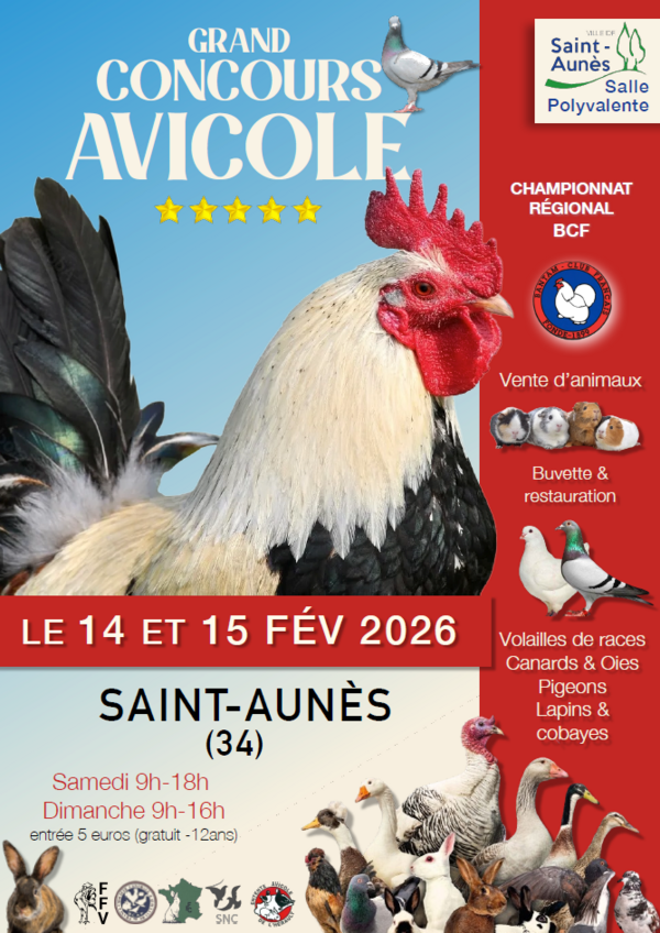 Venez découvrir l'exposition organisée par l'Entente Avicole de l'Hérault et la ville de Saint-Aunès, pour mieux connaître lapins, canards, volailles, et les animaux de la basse-cour.