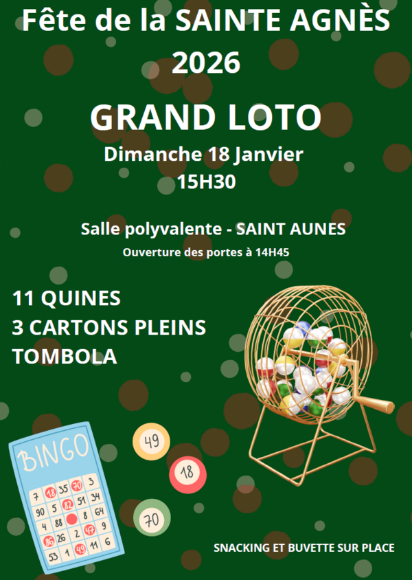 Le comité des fêtes organise un grand loto à l'occasion de la fête de la Sainte Agnès, le dimanche 18 janvier 2026.